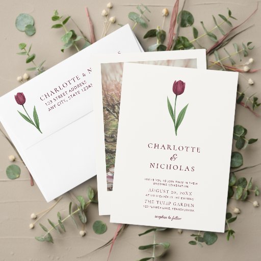 Elegant Script Tulip Ivory Wedding Return Address ラベル