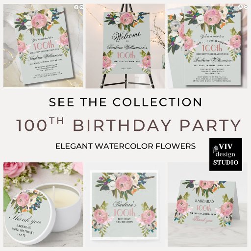 Elegant SURPRISE Handpainted 100th Birthday Party 招待状