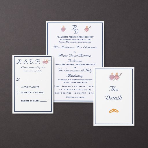 traditional catholic wedding invitationssacred heartimmaculate heartsacrament of holy matrimonynuptial massjoined ringsrsvpwedding response cardelegant framed bordernavy blue white