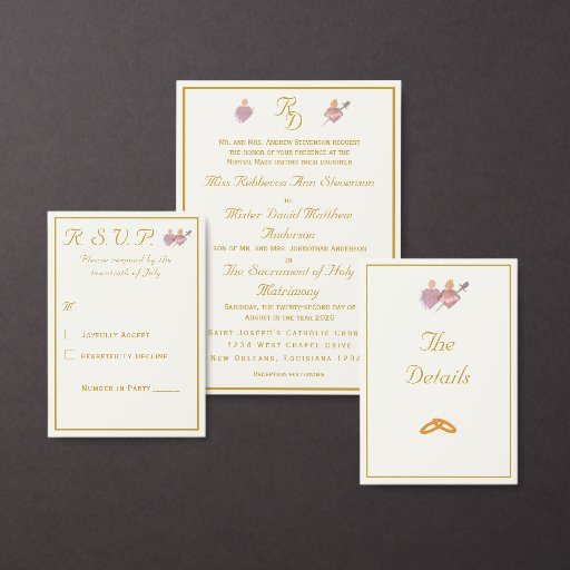 Elegant Two Hearts Catholic Wedding 出欠カード