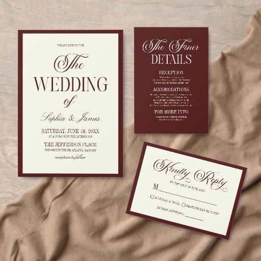 Elegant Vintage Ivory Dark Burgundy Wedding フェイバータグ