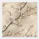 This refined seamless pattern features delicate blossom branches flowing gracefully across the design. Thin dark branches extend in elegant lines, adorned with small white blossoms highlighted by soft golden centers, creating a light and airy botanical composition.