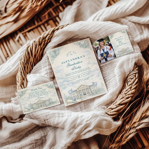 This elegant dentist graduation design features a soft botanical frame paired with dental symbols such as a white coat, dental tools, diploma scroll, and smiling tooth illustration. The calm green and ivory palette creates a polished yet welcoming look, perfect for celebrating dental school graduation, white coat milestones, or a dentist’s professional achievement. Fully customizable with names, dates, and event details.