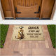 Lass deine Gäste mit einem Lächeln und einem humorvollen Augenzwinkern in dein Zuhause eintreten! Diese Fußmatte zeigt ein niedliches Erdmännchen, das aufmerksam in die Ferne schaut, als würde es neugierig nach unerwünschten Besuchern Ausschau halten. Der Text „Quick, Step in! Before someone sees you“ fügt eine witzige Wendung hinzu, als würde das Erdmännchen seine Gäste auf lustige Weise in den Schutz des „Baues“ einladen, bevor jemand anderes ankommt. Eine weitere charmante Nachricht „Built with LOVE for Family & Friends“ rundet das Design ab und vermittelt die liebevolle Atmosphäre deines Zuhauses. Die sanften Sandfarben im Hintergrund und die natürlichen Beige- und Brauntöne des Erdmännchens sorgen für eine warme und einladende Optik, während die dunkelbraune Schrift für Klarheit und Eleganz sorgt. Perfekt für alle, die Humor und Wärme in ihrem Zuhause vereinen wollen. Diese Fußmatte ist auch ein tolles Geschenk für Freunde oder Familie – ideal für jede Einweihung oder als originelle Deko für das Heim.