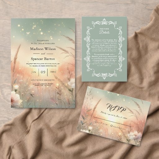 Ethereal Pastel Wildflower Field Wedding 出欠カード