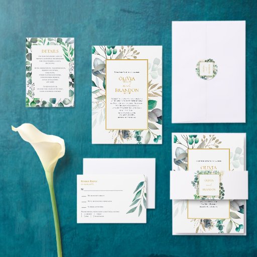 Set the tone for an elegant and timeless celebration with this wedding invitation featuring soft eucalyptus watercolor artwork paired with a refined gold frame. The delicate greenery adds a natural, romantic feel, while the gold accents bring a touch of classic sophistication. Perfect for modern, rustic, or garden-inspired weddings, this invitation can be personalized with your wedding details to create a beautiful first impression for your guests.