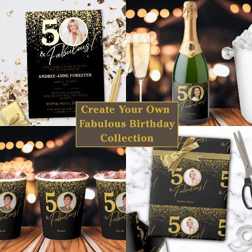 Create your own fabulous birthday celebration! This elegant gold foil photo card features modern black and gold glitter design—perfect for milestone birthdays at any age. Whether it's a fifty and fabulous celebration, 40th, 60th, 70th, or any special birthday, this timeless design lets you personalize every detail.