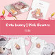 Faire-part naissance lapin fleur 案内状