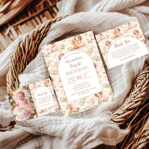 Fairy 1st Birthday Enchanted Garden サンキューカード