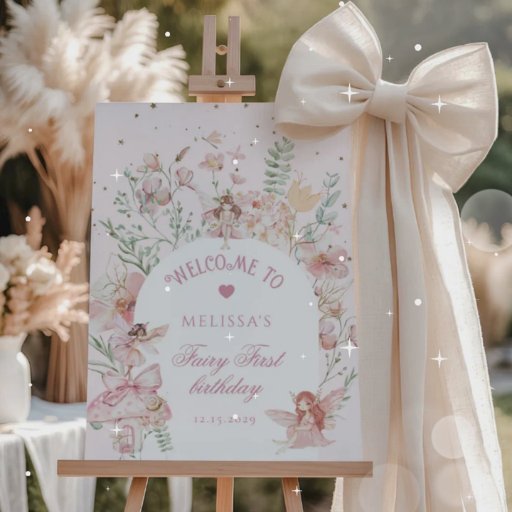 Fairy First Birthday Whimsical Purple Welcome Poster Matching items available.
