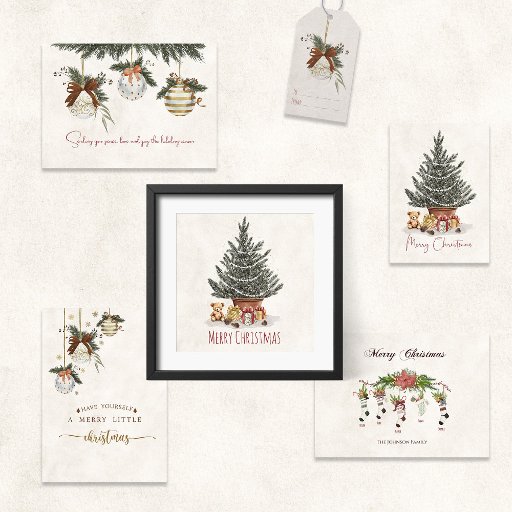 フラットシーズンカード, サイズ: 13.3cm x 13.3cm, 用紙: シグネチャーマット, コーナー: サークル, 封筒: ホワイト
