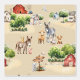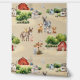 Rural country wallpaper design. Big pattern of farmland with houses, red barns, trees, and farm animals. The overall color is neutral beige. The animal groupings have been added in larger scale for kids to enjoy. The design is perfect for a new baby or child of any age who appreciates country life.