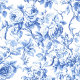 Farmhouse Blue French Toile Roses Floral Wallpaper 壁紙