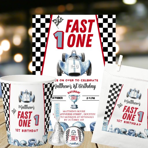 Fast One 1st birthday Boy Racing Car Treats 台座サイン