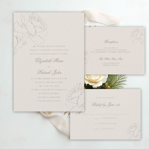 Faux Embossed Roses Ecru Formal Parents Wedding 招待状