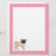 Fawwn Pug Dog Cartoon Mops愛ハートパターンピンク レターヘッド