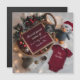 this flat lay features a delightful crochet Santa penguin, a festive basket filled with Christmas ornaments and greenery, and a red baby bodysuit with space to personalize your baby's name. Nestled inside the basket is a classic letter board displaying your special message Whether you're sharing your news on social media, printing a keepsake card, or adding a special moment to your baby book, this gender-neutral holiday design is a joyful way to celebrate the season and your growing family.