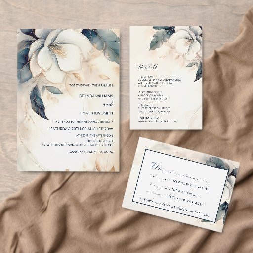 Fine art watercolor ivory white flowers. Matching wedding invitation available.