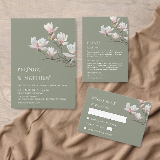 Fine Art Magnolia Casual Sage Green Wedding 招待状