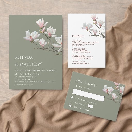 Fine art magnolia branch on a transparent sage green background wedding welcome board.
