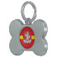 Pet Tag with design with flag of Vilnius, capital city of Lithuania; red flag with yellow stripe and coats of arms with two golden lions holding a shield in the center