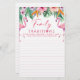 Add a heartfelt activity to your tropical baby shower with this Family Traditions keepsake card. Guests are invited to share a favorite childhood tradition, creating a beautiful collection of memories and advice for the new family. Featuring pink flamingos, watercolor florals, and palm leaves, this card perfectly complements a summer or luau-themed shower.