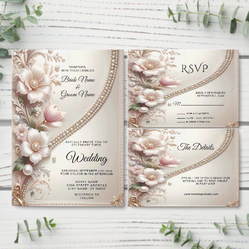 Beautiful Floral and Pearl Embellishments Gift Tag