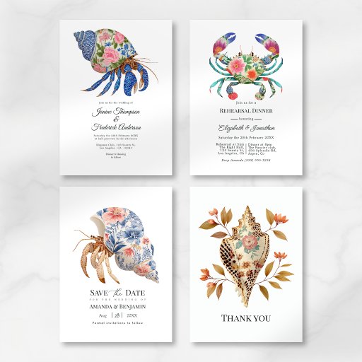 Elevate your reception tables with this elegant Floral Lobster & Crab Wedding Menu Card, featuring a beautifully detailed botanical seafood illustration in soft navy, coral, and coastal tones. Perfect for beach weddings, seaside receptions, and nautical-themed celebrations, this menu design adds a refined yet unique touch to your table setting. Fully customisable, it’s ideal for showcasing your wedding menu in style while complementing your matching stationery suite.
