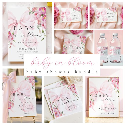 Floral Pink Bow Baby Shower ペットボトルラベル