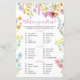 Get the party started with this charming floral 'What's in Your Purse?' shower game. This beautifully designed game card features a delicate watercolor floral border in vibrant hues of pink, yellow, and purple, framing the fun list of common purse items. Guests will love checking off the items they have in their own bags to score points and see who the ultimate purse-packing pro is. It's the perfect icebreaker for any baby shower, wedding shower, or birthday celebration, adding a touch of elegance and fun to your event's decorations and activities.