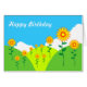 幾何学的シンプルな漫画の花を持つ漫画の風景。前面と内側のハッピーバースデー(文字は変更可能)。