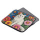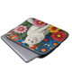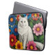Fluffy White Cat and Folk Art Flowers ラップトップスリーブ