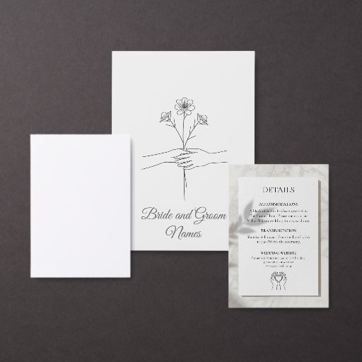 Celebrate your union with this elegant and modern wedding invitation. Featuring a sophisticated line art illustration of hands gently cradling intertwined hearts, this design symbolizes love and togetherness. Set against a soft, subtle grey background with beautiful script typography, it’s perfect for the contemporary couple seeking a minimalist aesthetic. Fully customizable for your special day.