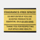 Perfect for homes, offices, studios, and any indoor spaces that require a scent-free environment. Helps protect individuals with allergies, asthma, migraines, chemical sensitivities, etc. Bold, high-visibility text communicates the message in a practical and stylish way to help maintain clean indoor air.