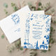 French Blue Whimsical Pastoral Wedding Invitation, 出欠カード