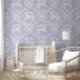A hand-drawn rococo-inspired pattern featuring elegant carousel horses and delicate florals on a soft French lilac background with a subtle plaster texture. The dense, symmetrical layout blends whimsical storybook charm with refined vintage elegance, ideal for nurseries, classic interiors, and romantic textile projects.