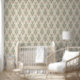 A refined French retro damask pattern featuring soft vertical stripes and ornate detailing in sage green and blush tones. Inspired by vintage European wallpaper, this seamless design brings timeless elegance to home décor, stationery, and gift products.