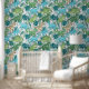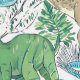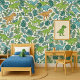 This wallpaper features a captivating seamless design of friendly dinosaurs and vibrant green tropical leaves set against a clean white background. Perfect as a focal point or feature wall, it offers an excellent and exciting way to transform and decorate any space, creating a fun and engaging atmosphere.