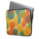This contemporary laptop sleeve features a vibrant pattern of abstract geometric shapes, highlighted by a striking color palette that includes teal, blue, green, orange, and yellow. Its ornate and eclectic style appeals to artistic fashionistas, trendsetters, and fans of vintage retro art, as well as those who appreciate abstract digital designs.