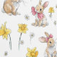 Adorable brown bunnies in bows with daffodils and daisy make the cutest bedroom setting for spring!