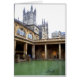 背景のBathのカテドラルが付いている歴史的なローマの浴室への訪問。 Bath、イギリスの歴史上有名な町。