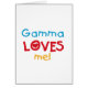 Gamma Loves MeのTシャツ、カード、シール、ボディスーツのバッグなど、カラフルレッド、イエロー、ブルーの文字とハートデザイン。これらのガンマ私のアパレルとギフトアイテムはガンマスマイルを作る!