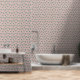 beautiful vintage wallpaper in a blush pink with delicate green ginkgo leaves.