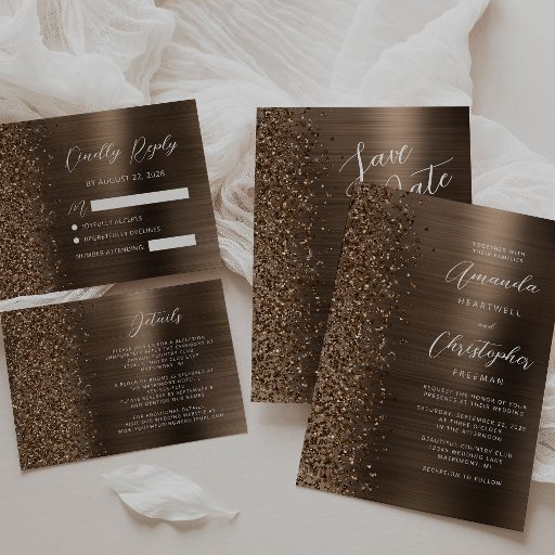 Glam Brushed Metal Glitter Bronze Wedding Suiteデザイン: Akhates Designs