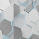 Illuminate your space with this futuristic 3D glowing hexagon acoustic panel wallpaper, featuring white and sliver hex tiles with blue neon glows for a cyberpunk, high-tech vibe. Perfect for gaming rooms, modern studios, offices, or bedrooms-Self-adhesive, easy to apply and remove, ideal for renters seeking bold wall art.