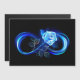 Luminous infinity symbol with glowing, beautiful, lushly blooming rose made of blue flames on black background.