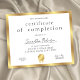 Professional Certificate of Completion in white and gold with your custom logo or business name, perfect for certificate of completion for any type of course completion such as beauty courses, professional & education courses and more! You can also use this elegant faux gold border award design for any type of accreditation. You can edit all text , add your logo and make professional diplomas for your business or organization.