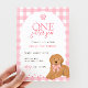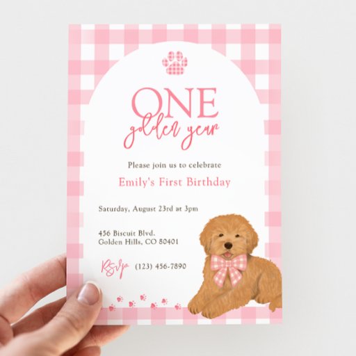 This adorable vinyl sticker features a sweet golden doodle wearing a pink gingham bow—perfect for laptops, water bottles, notebooks, and more. Durable and water-resistant, it’s a cute way to add a little puppy love to your everyday essentials or party favors.