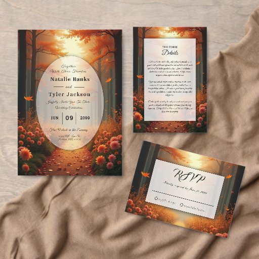 Golden Ember Autumn Woodland Stroll Wedding 招待状