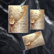 Golden Ornate Floral Rehearsal Dinner 招待状 (この独立クリエイターのコレクションをカスタマイズ。)Golden Ornate Floral Rehearsal Dinner 招待状 (裏面)Golden Ornate Floral Rehearsal Dinner 招待状 (スタンド正面)